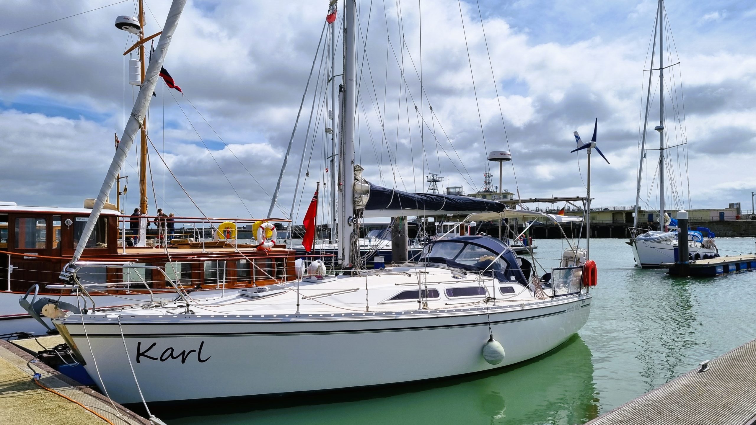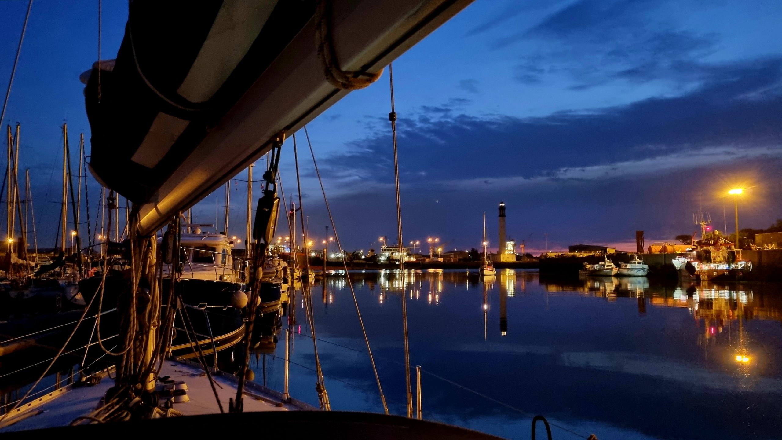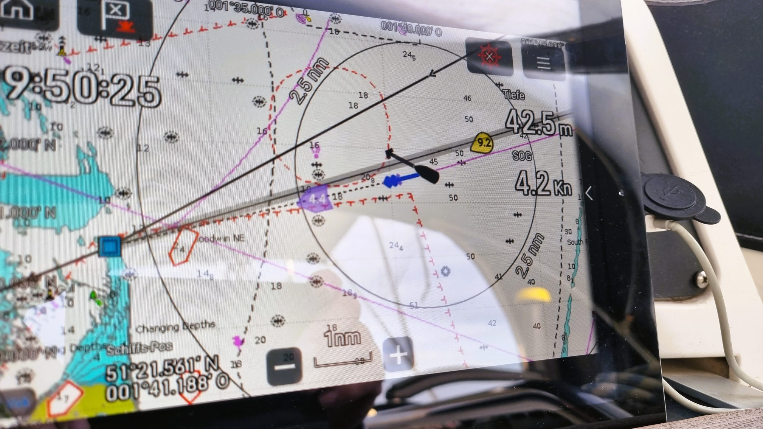 Auf Silke müssen wir noch verzichten. Zu wenig Urlaubstage und Frühjahr und Sommerurlaub geht bei Ihr leider noch nicht. Also gehts Mitte Mai am frühen, sehr frühen Sonntagmorgen um vier Uhr los. Richtung Westen, nach Ramsgate – 85 SM – ein guter Schlag für den Saisonbeginn. Da das Boot von meinem Freund Wilhelm noch in der Werft auf ein neues Deck wartet, kommt er kurz entschlossen mit. Zu zweit ist die Strecke auch um einiges entspannter. Kurzum, ein wunderbarer Segeltag! Nach anfänglich wenig Wind, gehts es nach drei Stunden unter Segeln bis kurz vor Ramsgate.