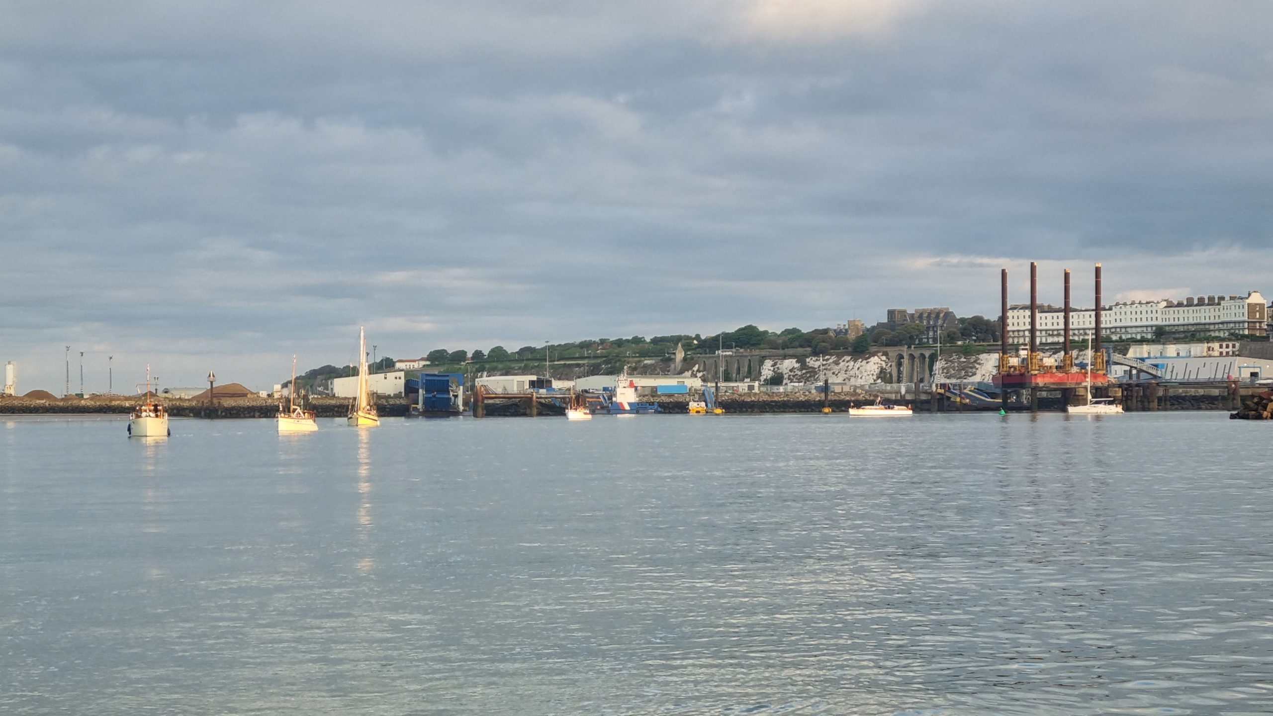 Nach einem Tag Pause in Ramsgate geht es Dienstag um 6.00 morgens unter Motor bei Flaute auf nach Dover. Beim Anmelden im Hafen per Funk die böse Überraschung: