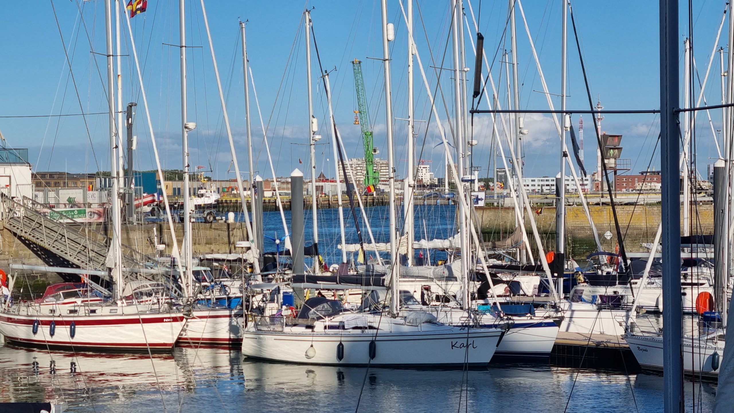 Aus dem angesagtem 10 kn Süd-Ostwind, wurden nach dem Start am Samstagnachmittag schnell 20-25 kn aus Süd-West. Schon in Zeebrügge war Schluss mit lustig und als gegen 10 Uhr abends der Wind deutlich über 20 Kn blies, war für uns klar, weder Calais noch Boulogne sur Mer, wir gehen nach Ostende. Die Windverhältnisse sind diesen Sommer recht chaotisch und für längere Törns nur schwer kalkulierbar.