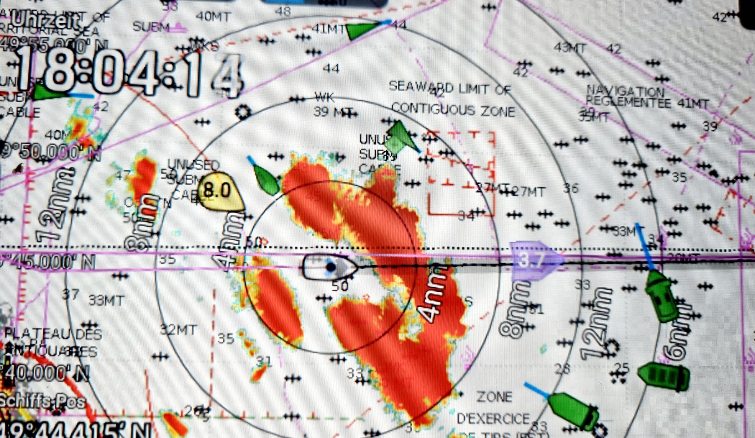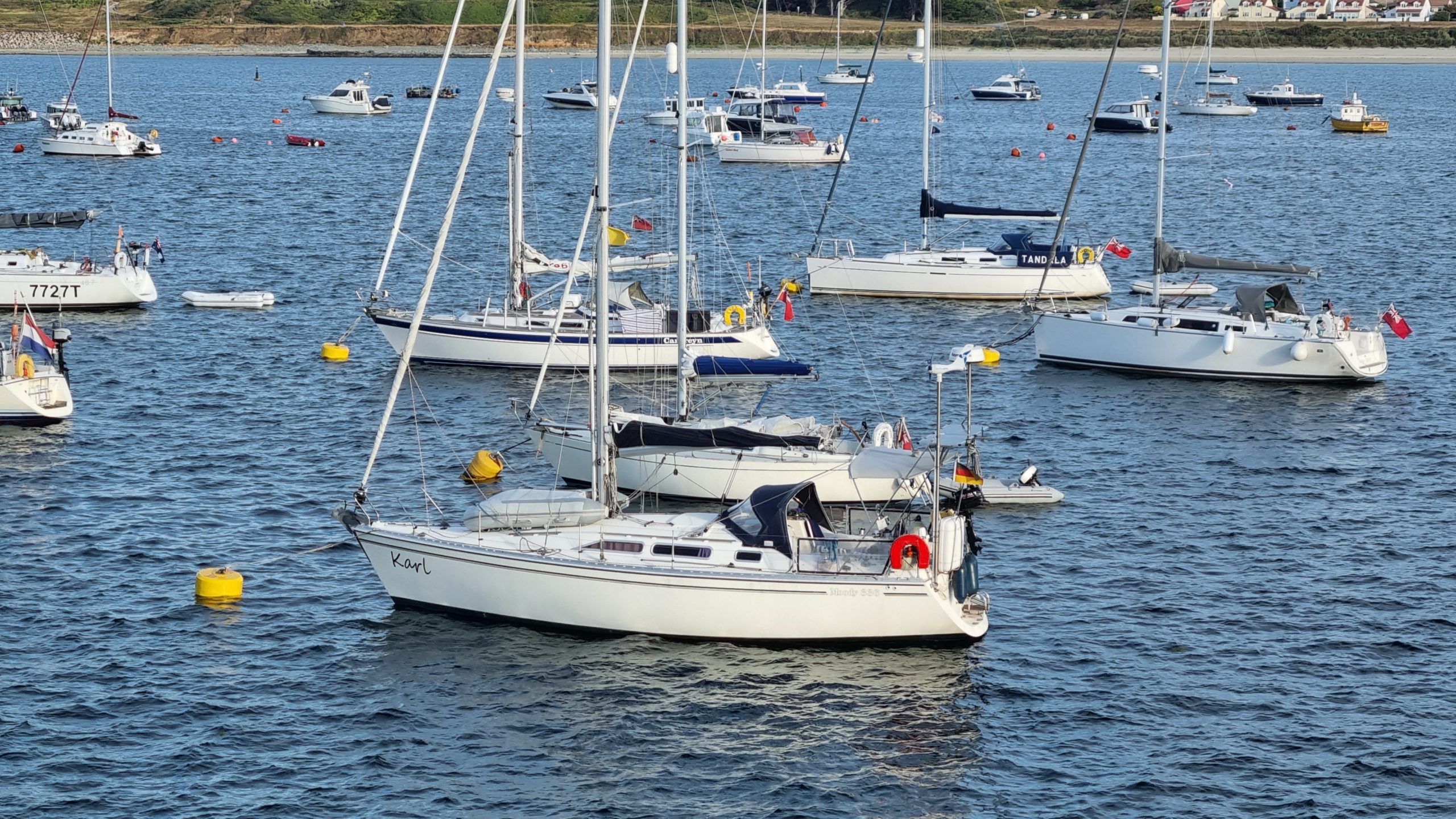 Den Sprung rüber nach Cherbourg hatten wir angestrebt, aber wir haben keine Chance auf 24 Std. konstanten Wind. Also gehts am Donnerstag nach Fecamp. Das passt halbwegs in der Vorhersage, endet aber mit 12,5 Stunden Motor (von insgesamt 14 Std.). Spät am Abend finden wir noch ein Plätzchen für unsern Karl und es ist wunderbar ruhig, als der Motor endlich aus ist. Dank unserer Fahrräder ist es nicht so schlimm, auf besseren Wind zu warten. Am Sonntag scheint es dann so weit und um 8 Uhr gehts raus Richtung Cherbourg. Diesmal sind es nur ! 10 von 16 Stunden unter Motor. Gegen Mitternacht kommen wir an und müssen feststellen das alle freien Liegeplätze am Besuchersteg mit Flatterband blockiert sind. Wir ahnen Böses. Morgends hören wir dann, dass wegen einer Regatta bis einschließlich Mittwoch kein Platz für unsern Karl ist. Wir werden unmittelbar gebeten, den Hafen zu verlassen. Da zumindest die Strömung stimmt, hängen wir vier Stunden später an einer Mooring in Alderney. Unser Minimalziel für diesen Urlaub ist nach 8 Tagen hart erarbeitet.