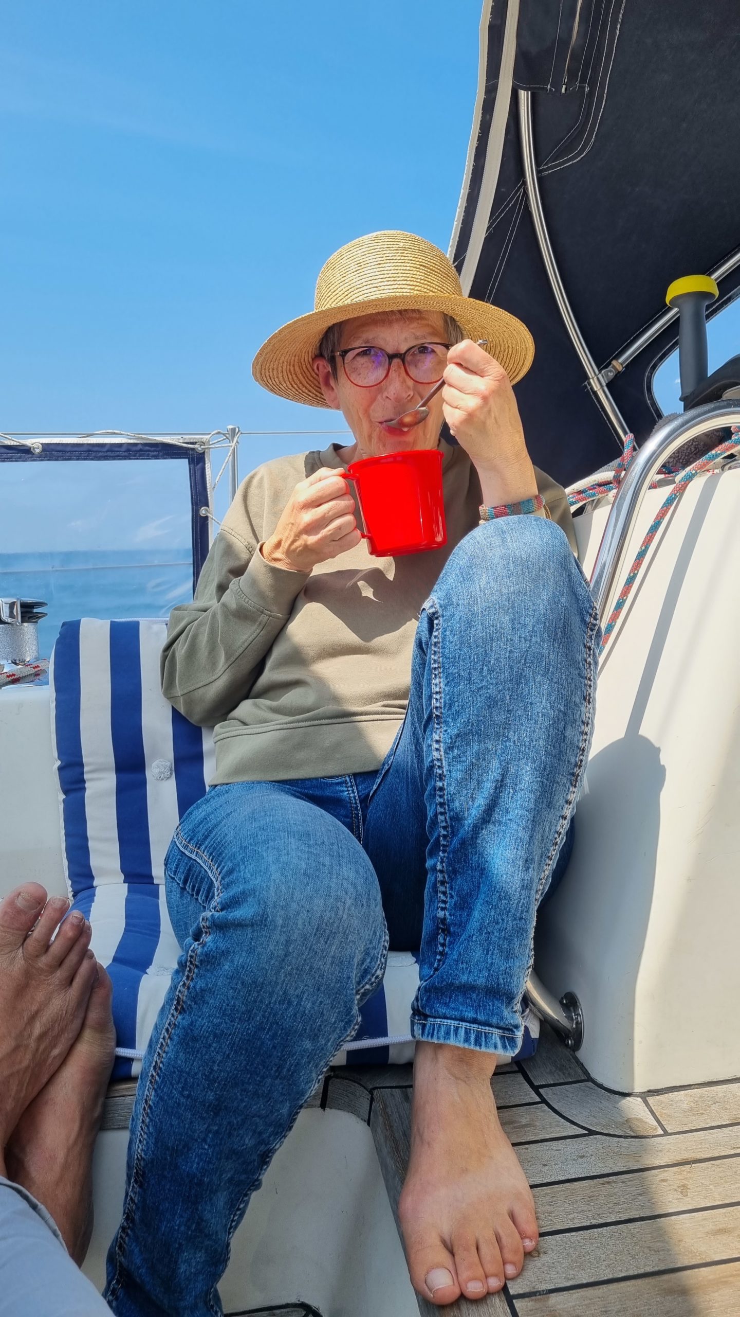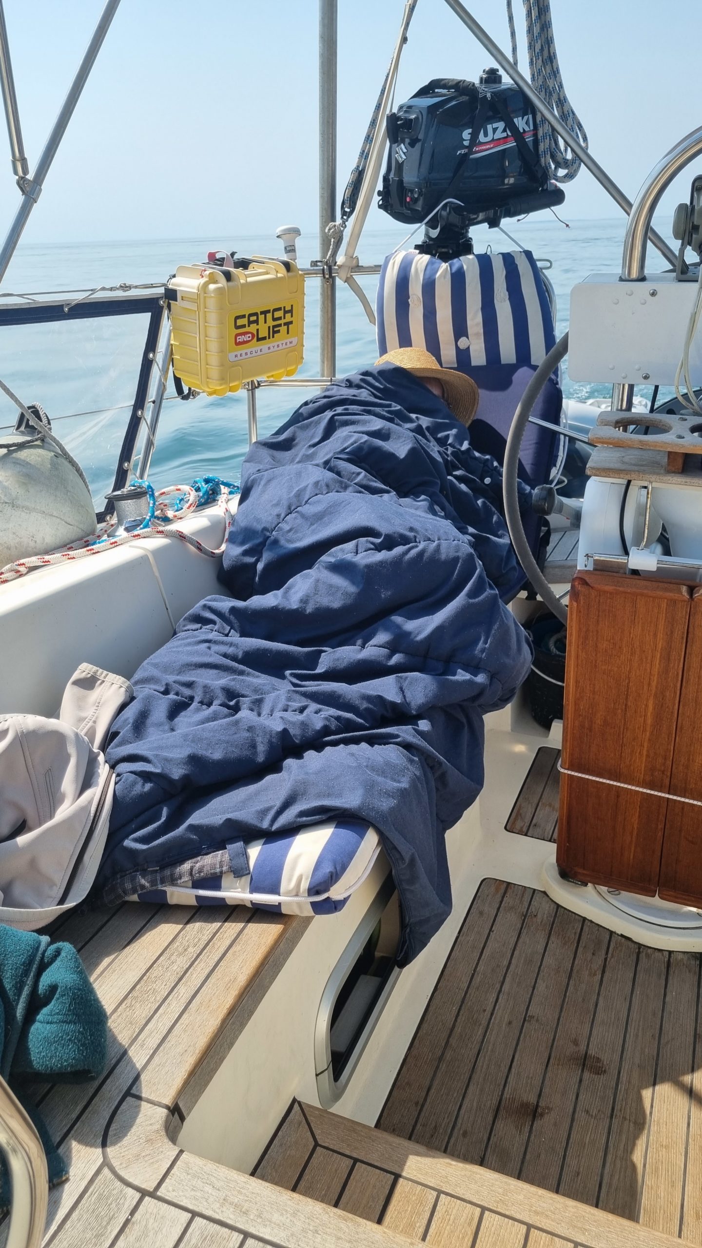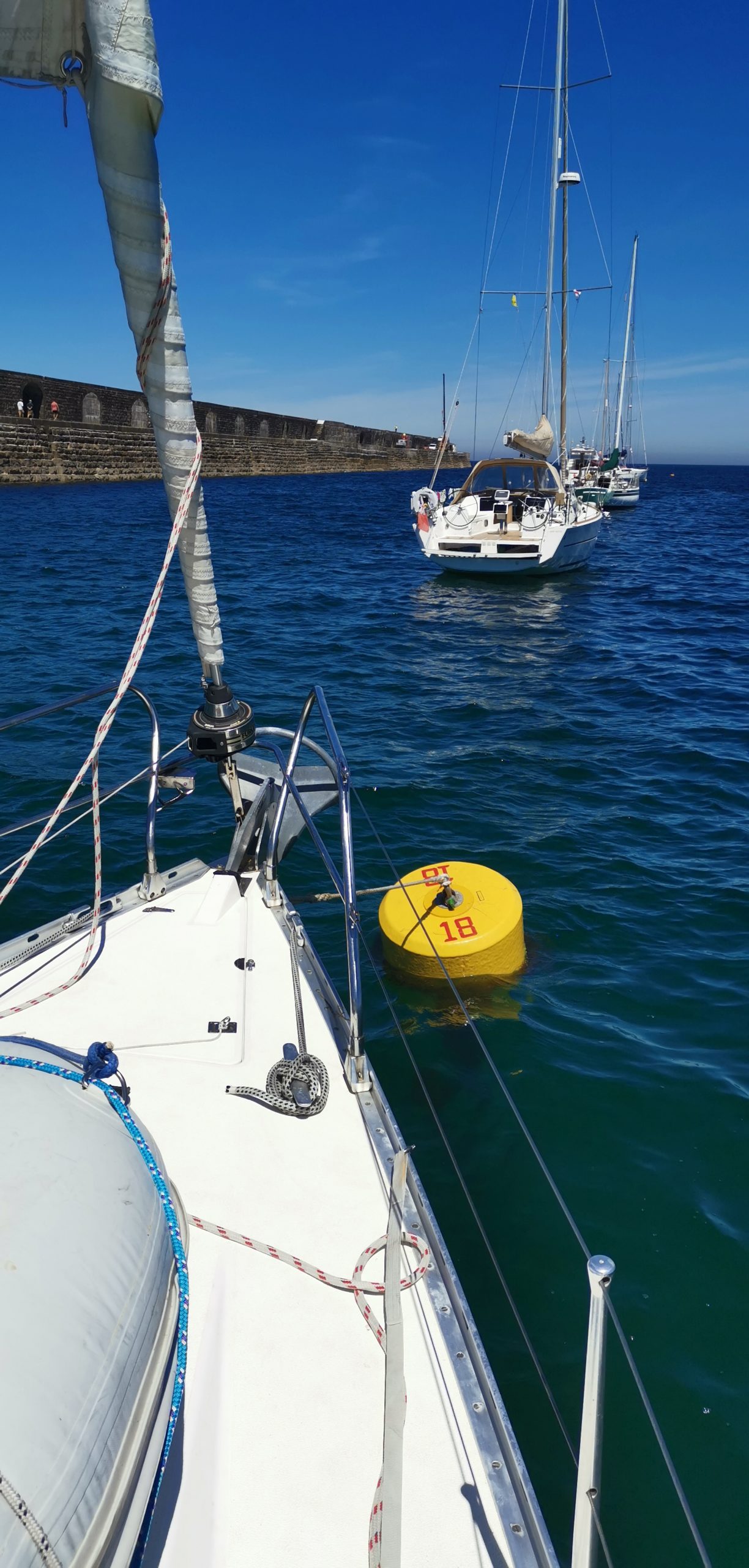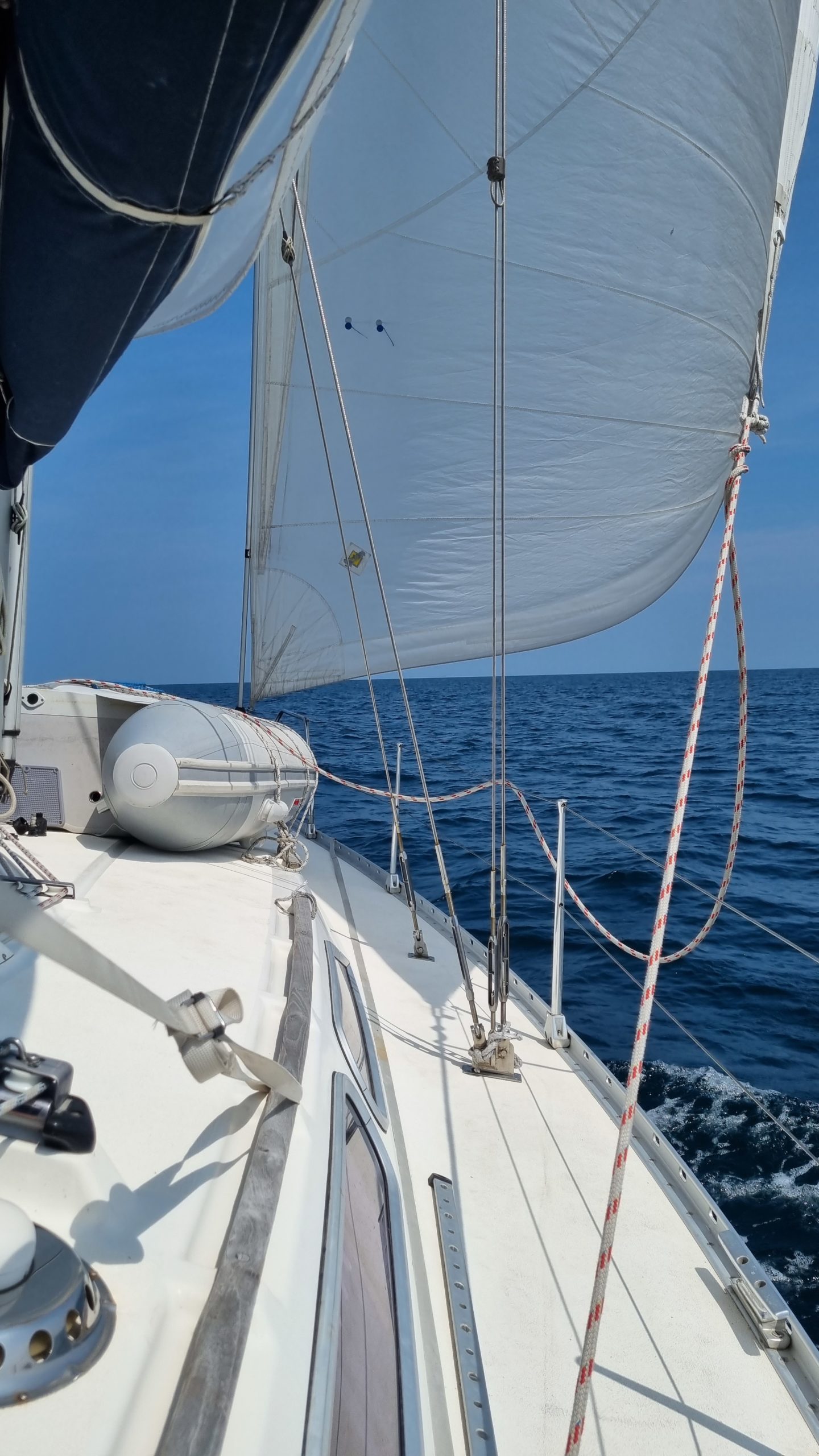 Fazit bis hierhin : Sonne und Temperaturen reichlich, fast tropisch. Wind, wenn vorhanden, unzuverlässig und unstetig. Wir, ein wenig genervt von den vielen Motorstunden. So ist es, wenn man nur eine begrenzte Meerzeit hat.