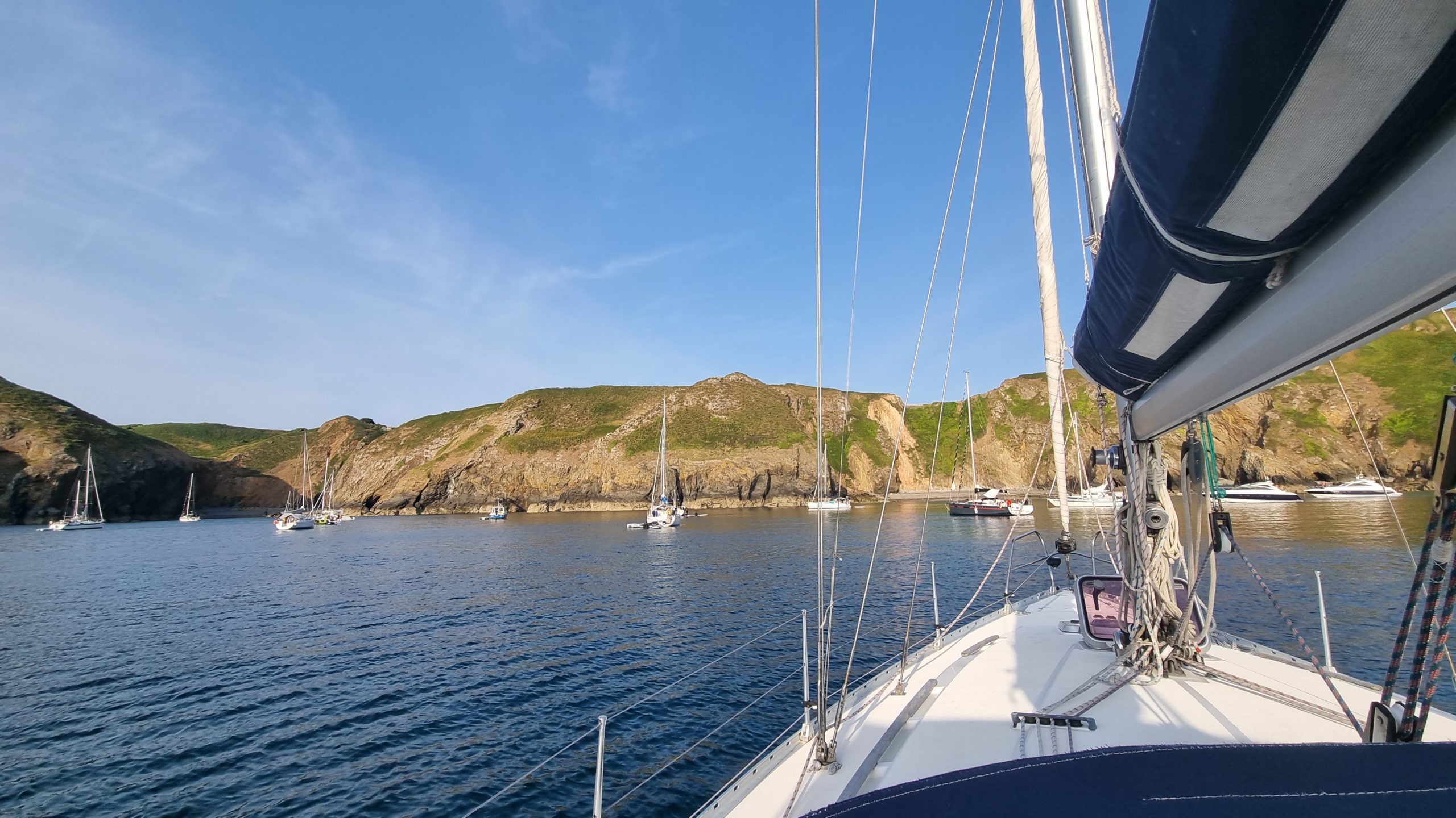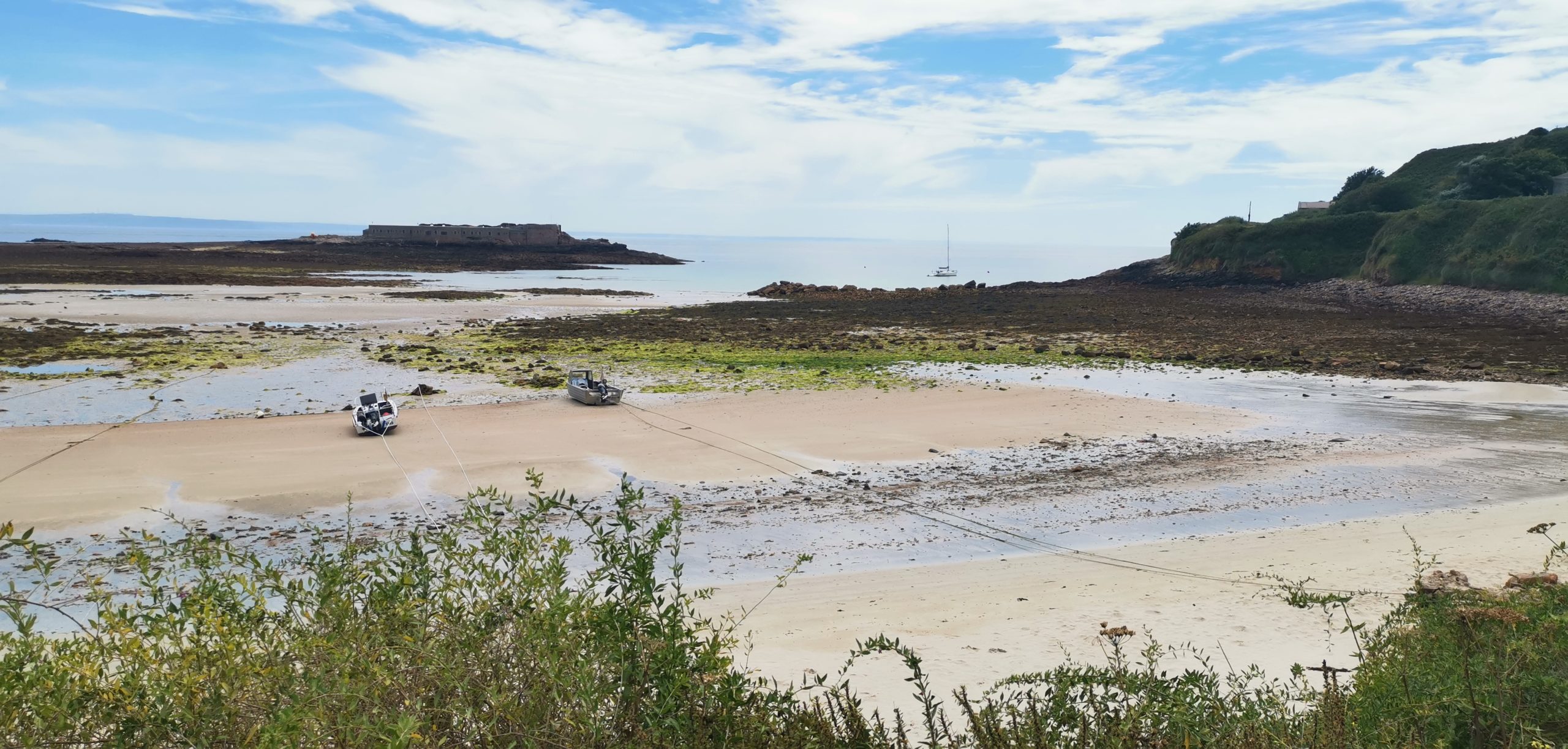 Aber erst einmal genießen wir den Trubel um den Nationalfeiertag in Saint Malo. Ein großes Feuerwerk mit Musikbegleitung am Abend. Mit dem Fahrrad geht es am nächsten Tag entlang der Rance zu einer ausgedehnten Radtour (45 km), teilweise über Stock und Stein. Die Anschaffung der E-Bikes hat sich jetzt schon gelohnt und es ist toll, wie die Fahrräder den Aktionsradius vor Ort erhöhen. Am Samstag besuchen wir noch einen gut besuchten, großen Wochenmarkt in einem Stadtviertel in Saint Malo, bevor es am Sonntag auf die Rückreise geht. Geplant war Grandville, bei der Ausfahrt war es Jersey und es wurde Ankern vor Sark. Wunderschön, hier hätten wir deutlich länger bleiben wollen.