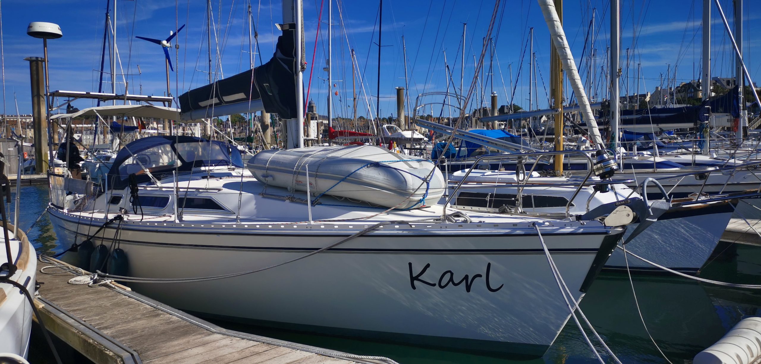 Fazit: etwas über 700 SM haben wir zurückgelegt. Zu wenig gesegelt, zu viel motort. Das Wetter war wunderbar, wir wurden von der Sonne verwöhnt. Erst Silke, dann ich: gesamt 10 Tage Corona an Bord, ein unsympathischer Passagier, der sich wahrscheinlich auf dem Wochenmarkt in Saint Malo eingeschlichen hat. Dank der Impfungen hielten sich die Beeinträchtigungen in Grenzen. Glück gehabt! Ein schöner, mal wieder viel zu kurzer Urlaub und hoffentlich unser letzter, unter solch einem Zeitdruck …
