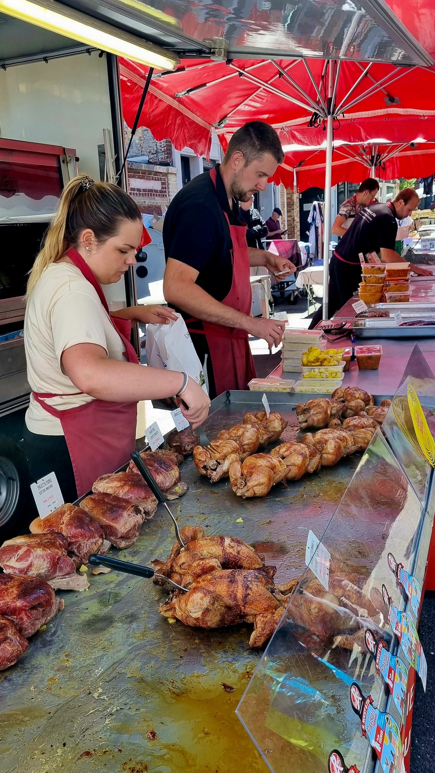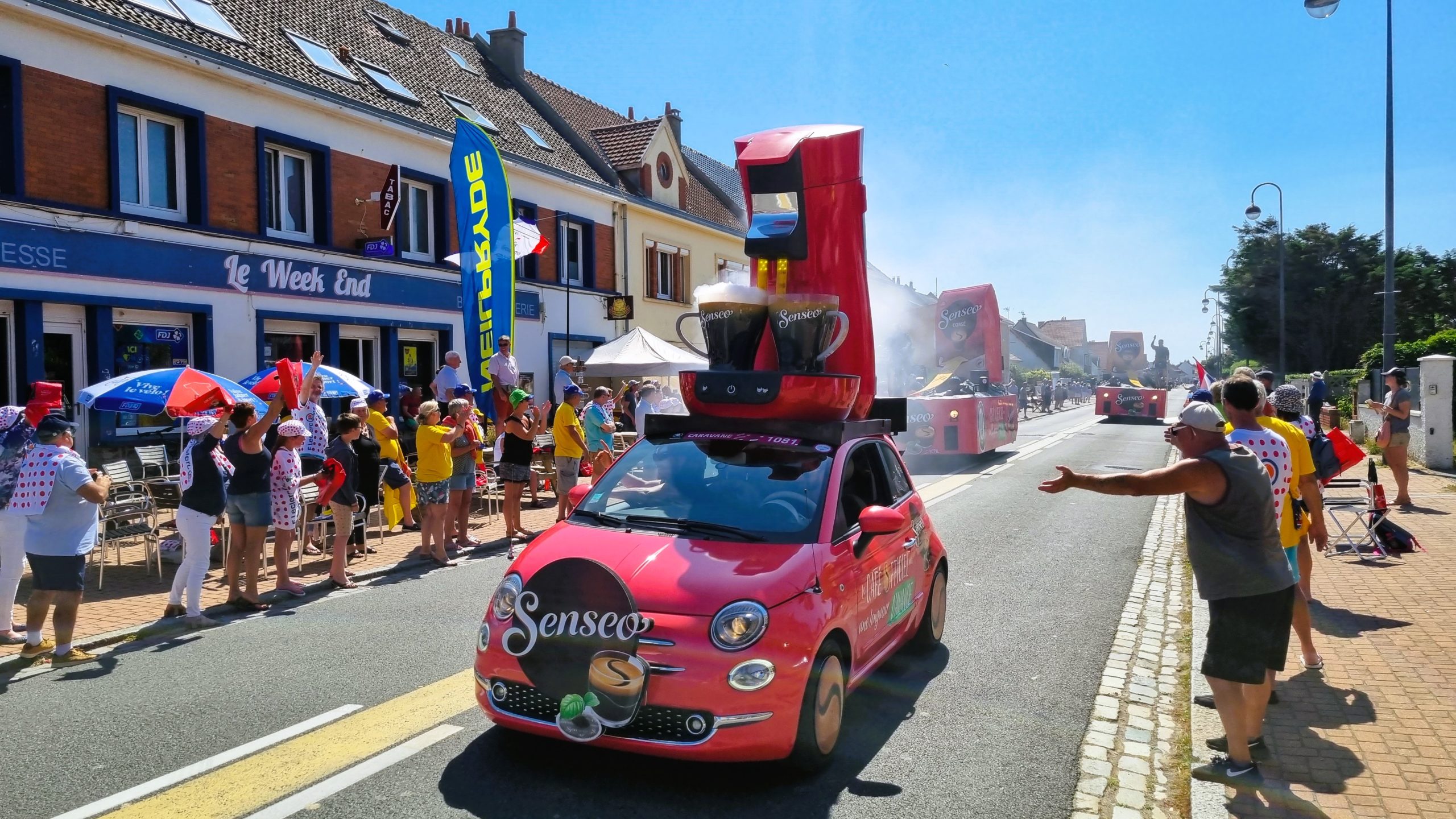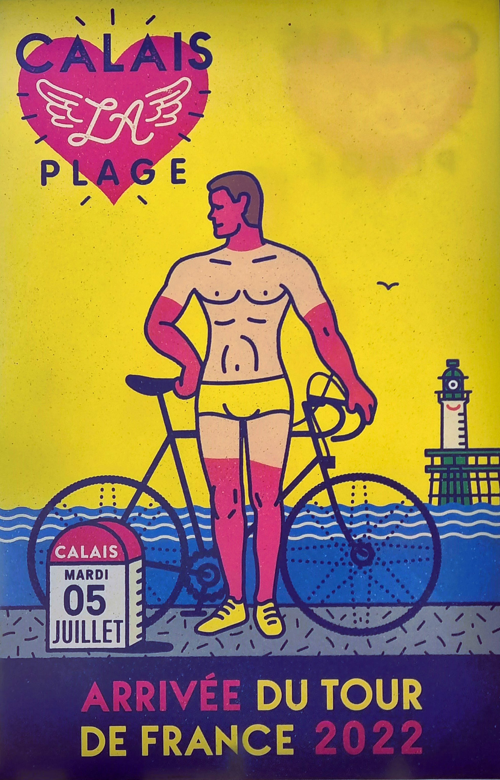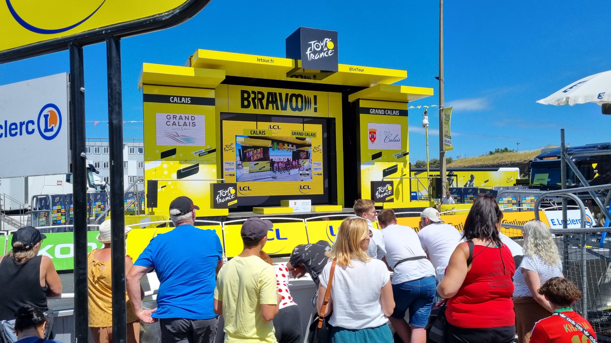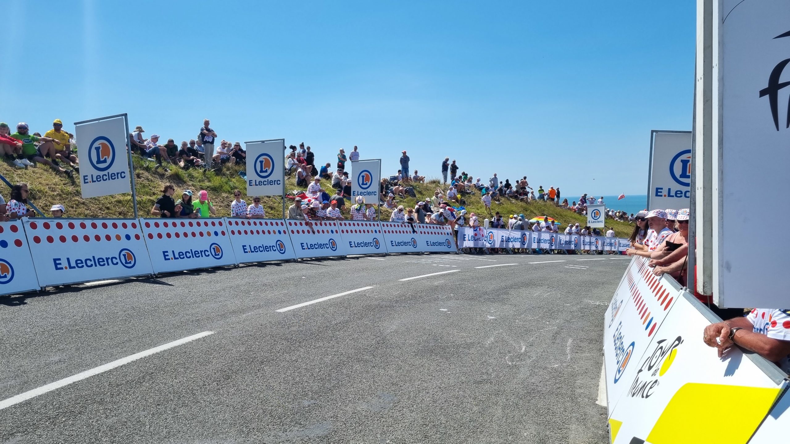 Calais ist im „Tour de France“ Fieber und am nächsten Tag Etappenziel. Also lassen wir uns nicht lumpen und wechseln die Sportart. Am nächsten Morgen fahren wir auf der schon abgesperrten Straße dem Pieton bis zum Cap de Blanc Nez entgegen. Es ist toll, die Begeisterung bei den Franzosen zu sehen. Überall wird gefeiert, gegrillt und herrscht gute Laune. Man hat sich für diesen Tag Urlaub genommen. Selbst wir werden immer wieder lautstark auf der ansonsten so gut wie leeren Straße angefeuert 🙂 eine wirklich tolle Radtour im Zeichen der Tour de France. Natürlich warten wir dann auch auf die Durchfahrt der Profis. Eine Stunde vorher rasen etliche Reklamewagen über die Strecke. Laute Musik von den Wagen und es werden alle möglichen kleinen Werbegeschenke geworfen. Die eigentliche Durchfahrt der Radler ist dann schon fast unspektakulär, denn man hat sie kaum gesehen, sind die Fahrer an uns vorbei . Dies mit allem drumherum erlebt zu haben ist interessant und auch spektakulär. Abends ist in der Stadt die Hölle los. Wir haben Glück, mit der Familie von Silkes Bruder, die hier in der Nähe Urlaub machen, noch einen Platz im Restaurant zu bekommen.