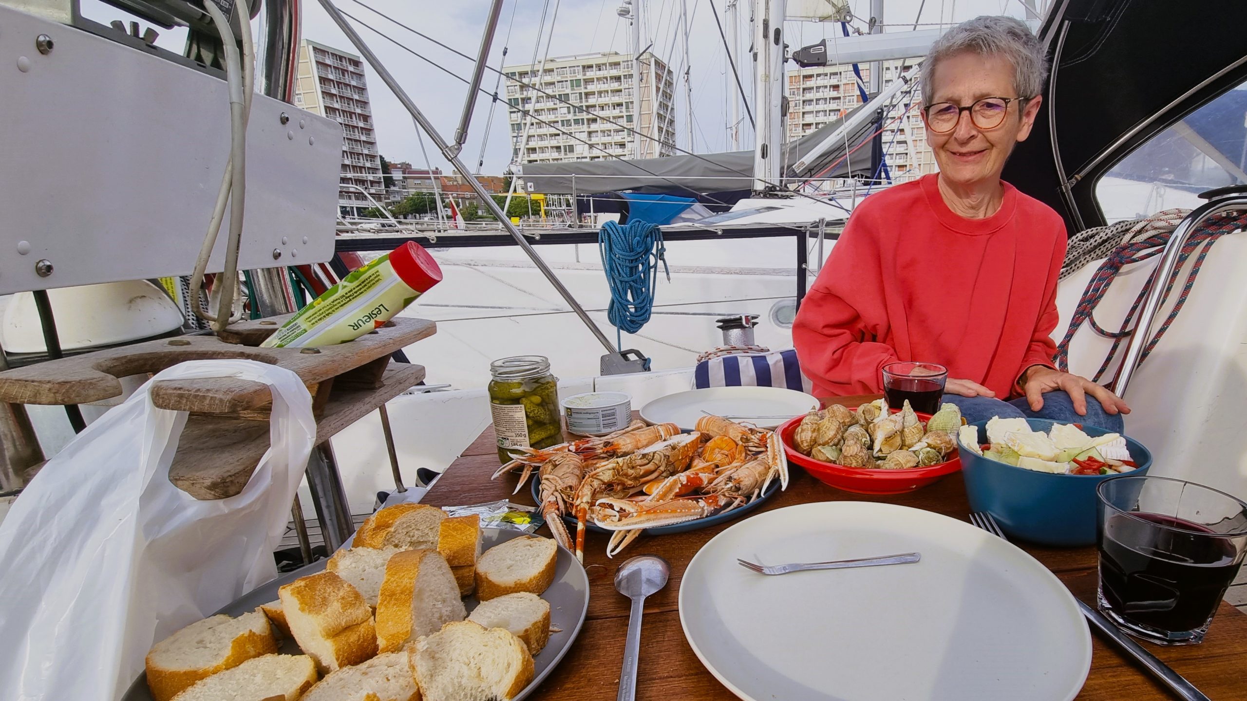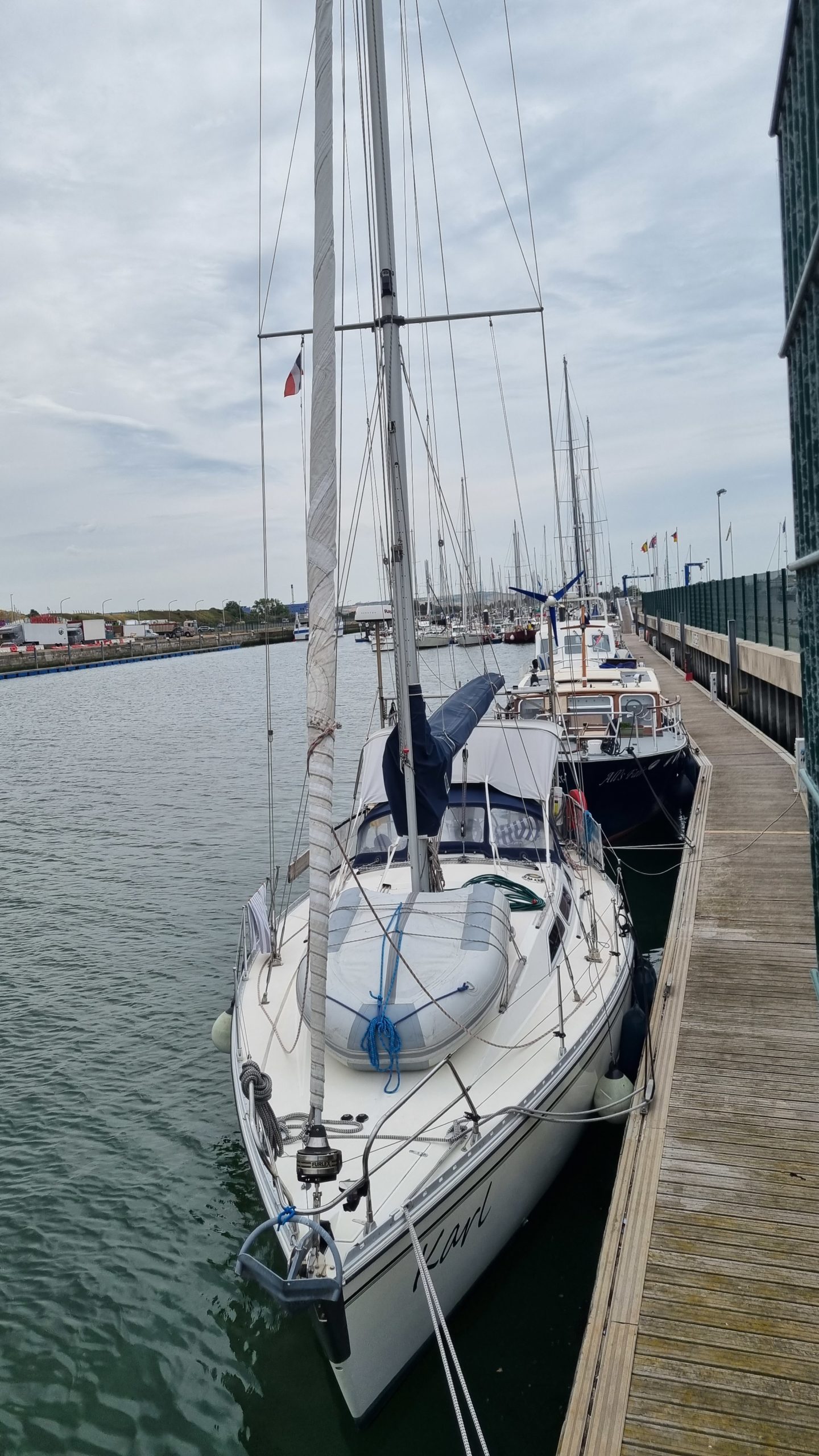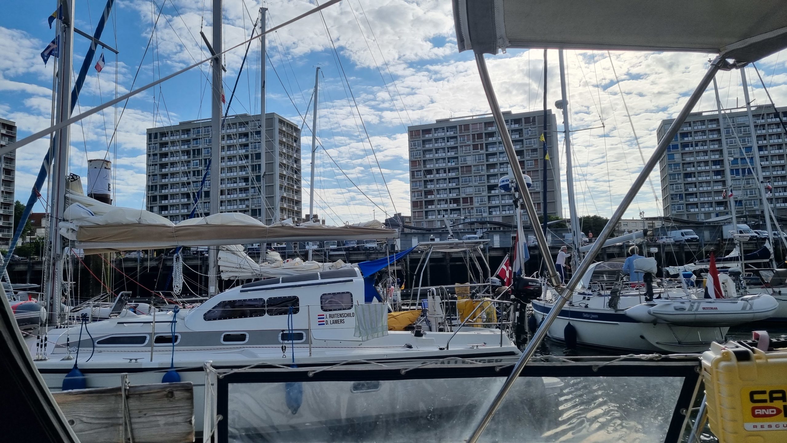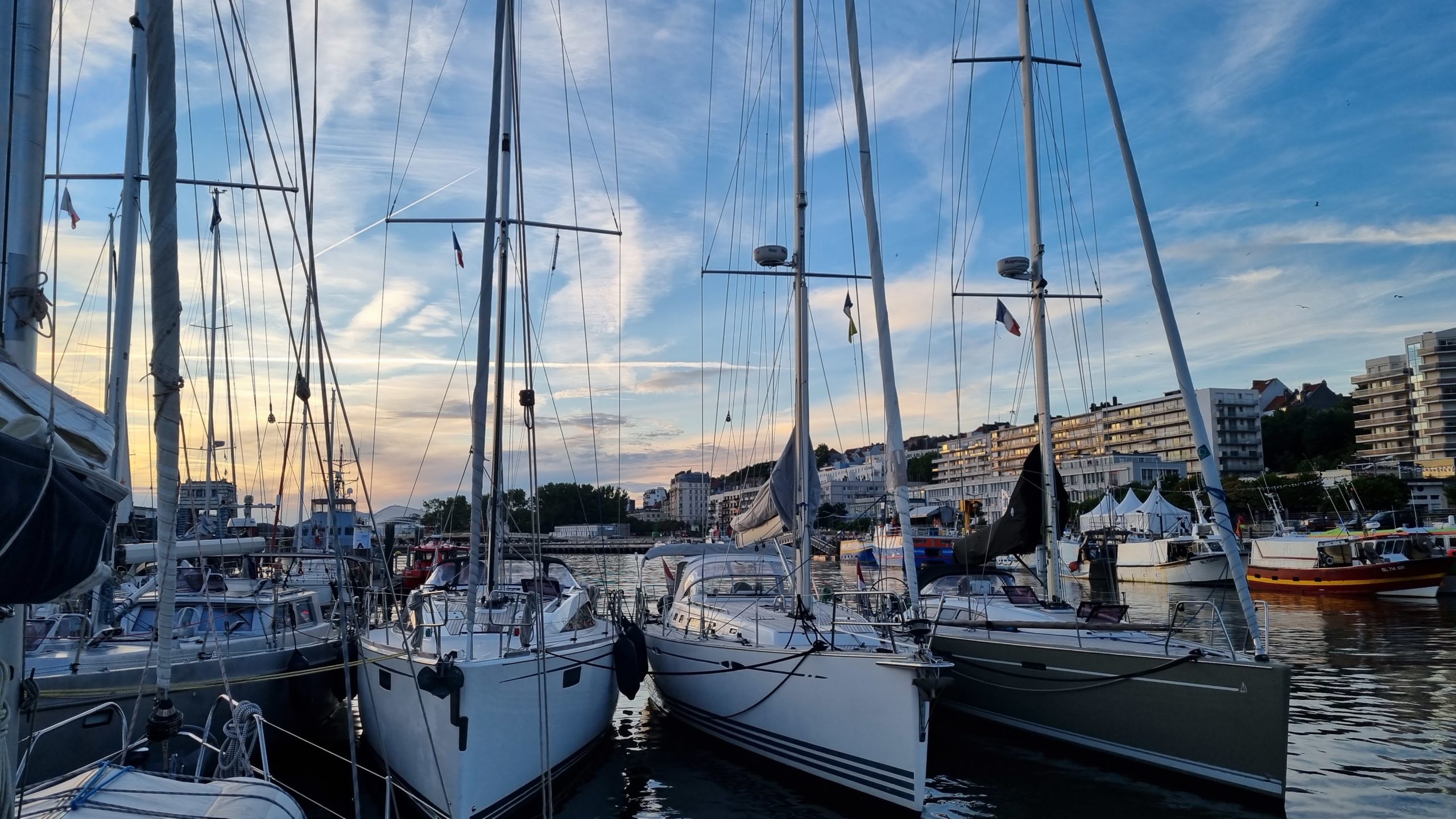 Morgens geht’s raus aus dem Hafen. Statt der vorhergesagten 5 kn Wind aus NW sind es gute 20 kn. Mit den Relingfüssen durchs Wasser fliegen wir auf´s Cap Gris Nez zu. Kaum aber haben wir es passiert, ist der Wind wieder weg und wir motoren die restlichen 6 Meilen nach Boulogne. Auch hier die nächste seglerische Zwangspause.