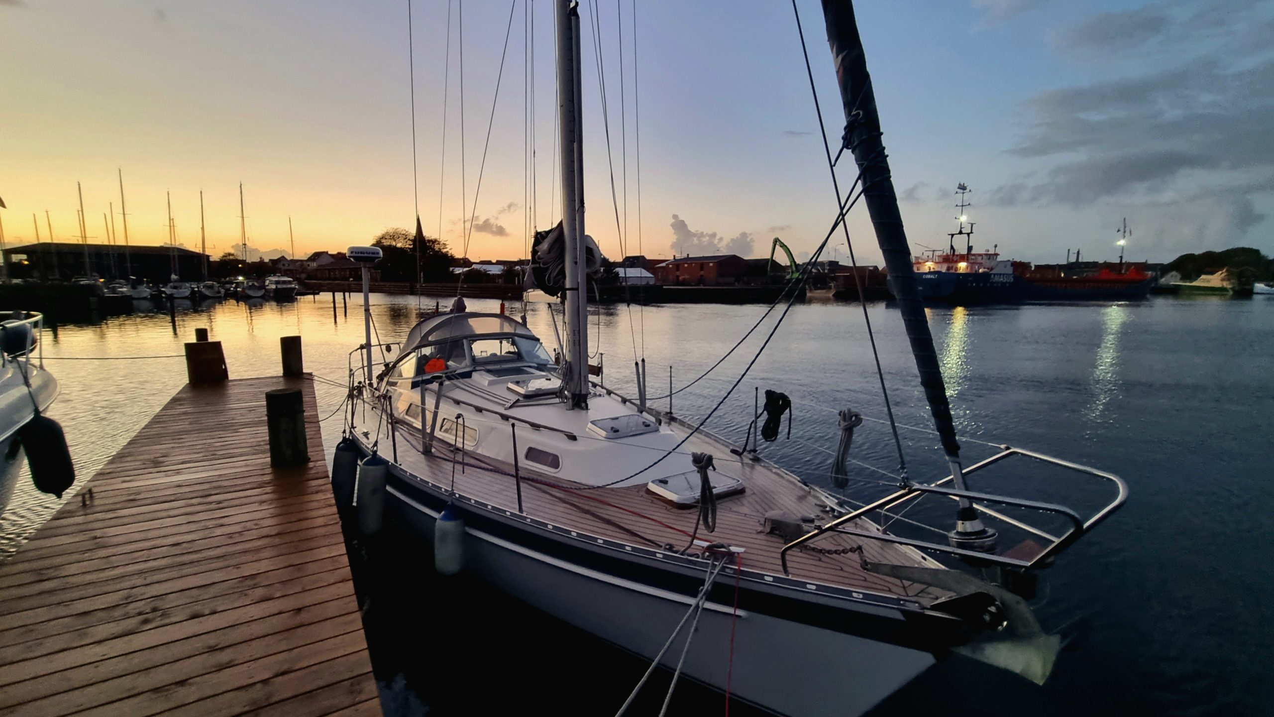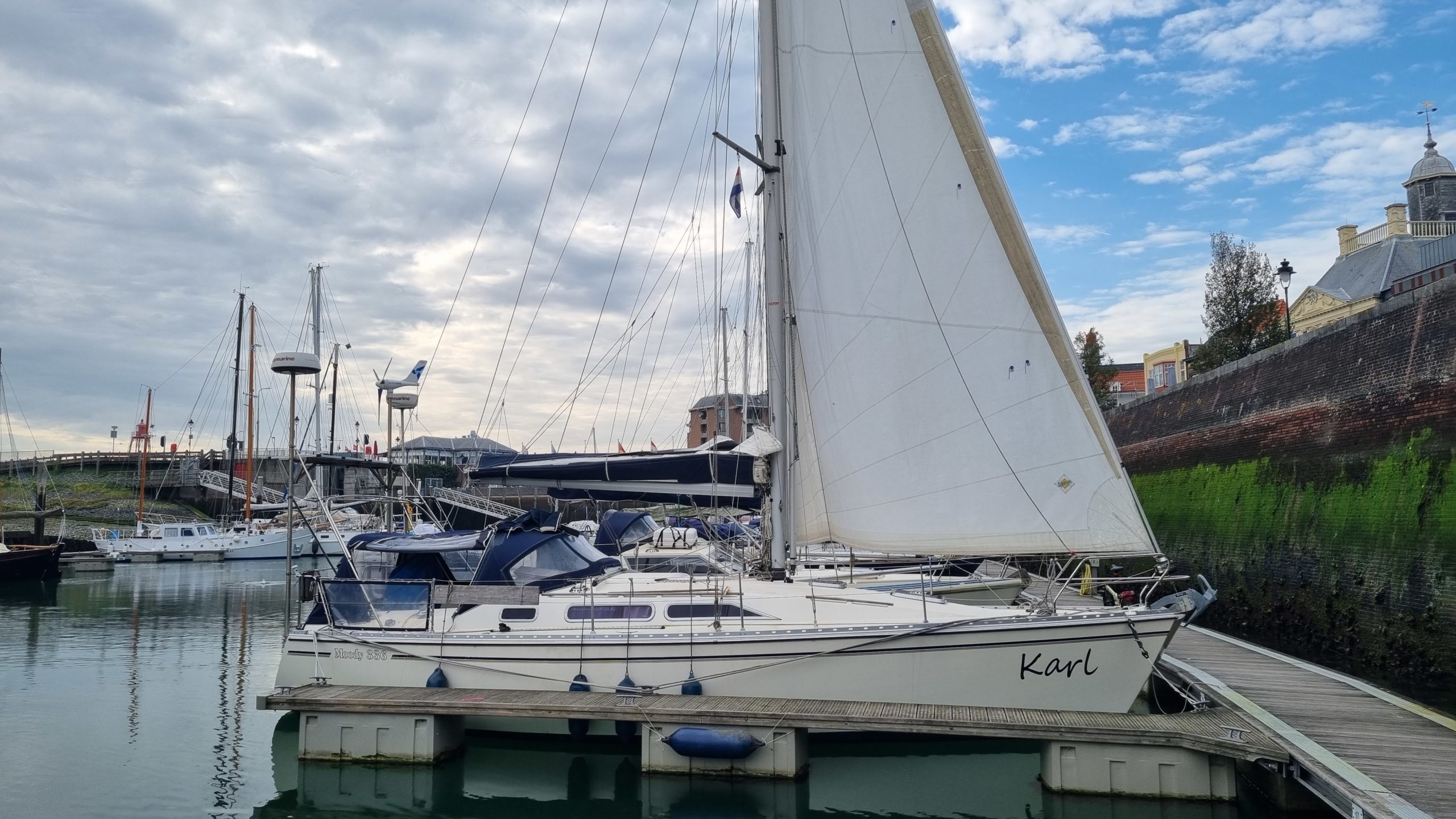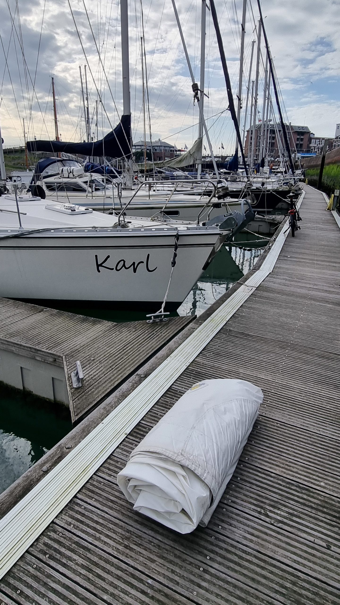 Anfang November ist es trotzdem so weit. Karl wird eingemottet, darf aber im Wasser bleiben. Die Segel sind getrocknet und abgeschlagen und wandern zur Kontrolle zum Segelmacher. Das Bimini ist abgebaut, nach fünf Jahren muss es dringend gereinigt werden. Kuchenbude aufgebaut. Ölwechsel, Dieselfilter erneuert, Trinkwasser abgelassen, Motor mit Frostschutz versehen. Alle wichtigen Festmacher doppelt belegt. Unser Nachbar – er wohnt in Vlissingen – hat ein Auge auf Karl. Das Schleusentor wird jetzt geschlossen, sodass es ruhig wird im Hafen.